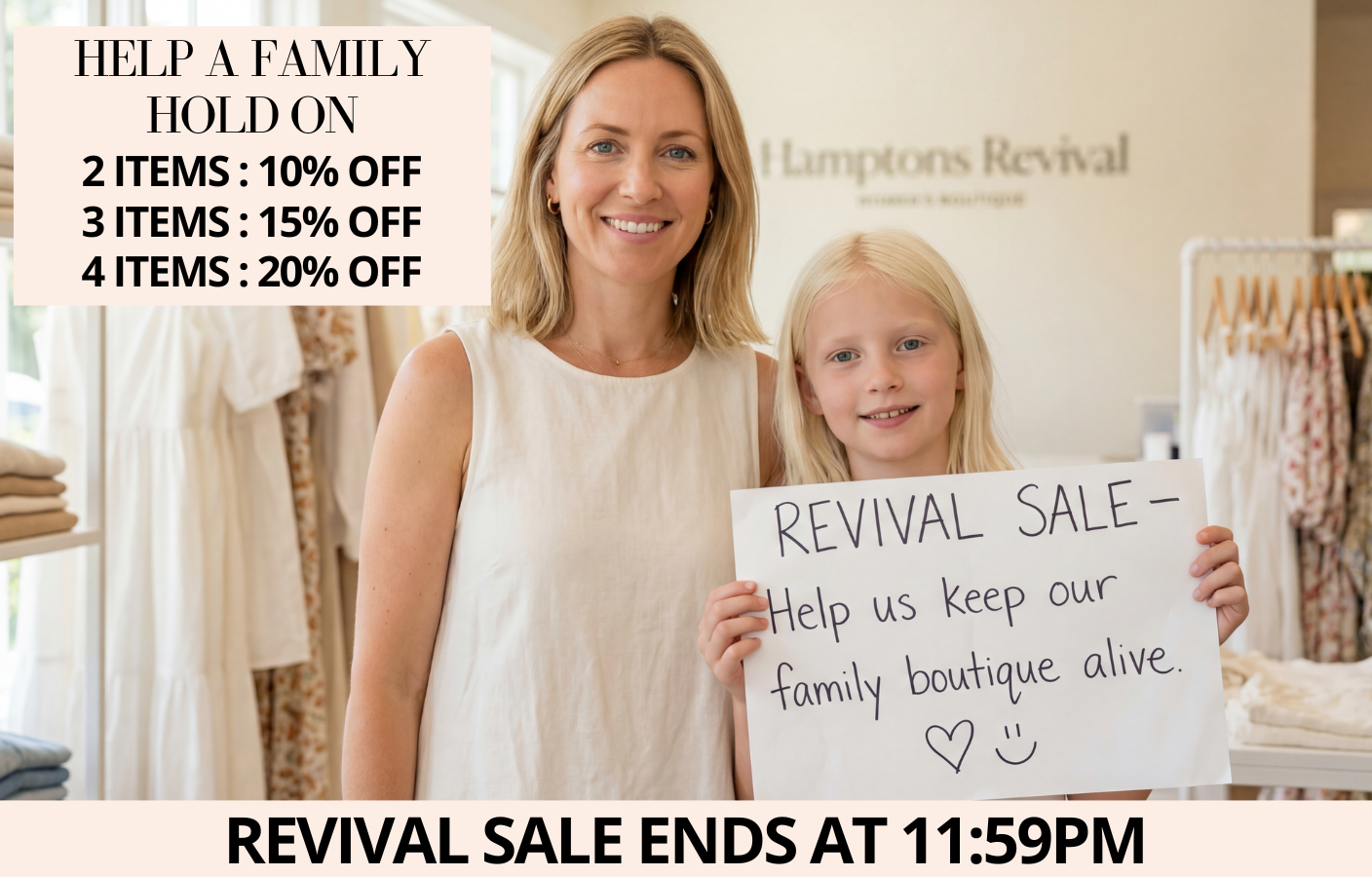 That’s why we’ve launched our Revival Sale: to clear inventory, create a little breathing room, and give our family boutique the fresh start it truly deserves.